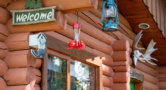 Looking for privacy? Well, that?s what you?ll experience here when you want it. You don?t have to worry about noisy neighbors down the hall as you?ll be staying in one of only four cozy rustic log cabins nestled amongst the cottonwoods. Each cabin is tastefully decorated with antiques and western memorabilia and each has custom-built log canopy beds.
